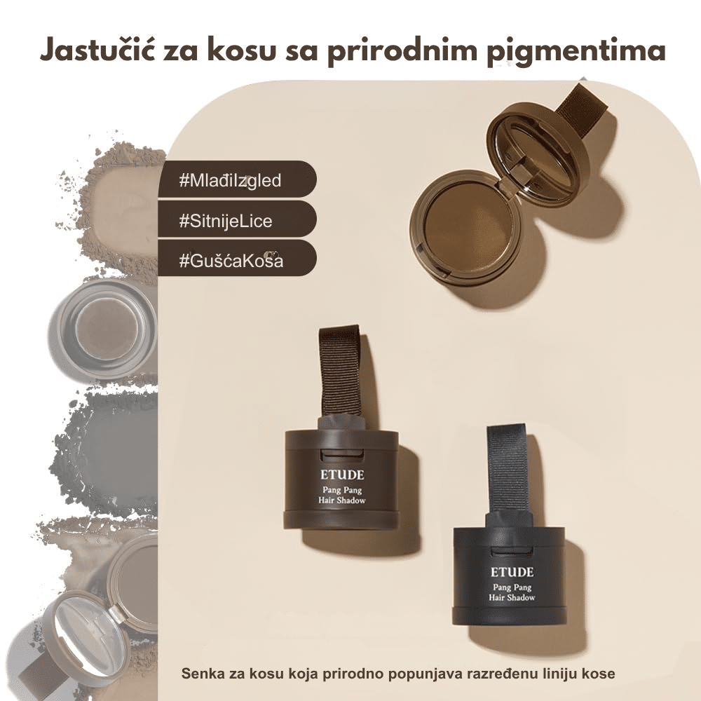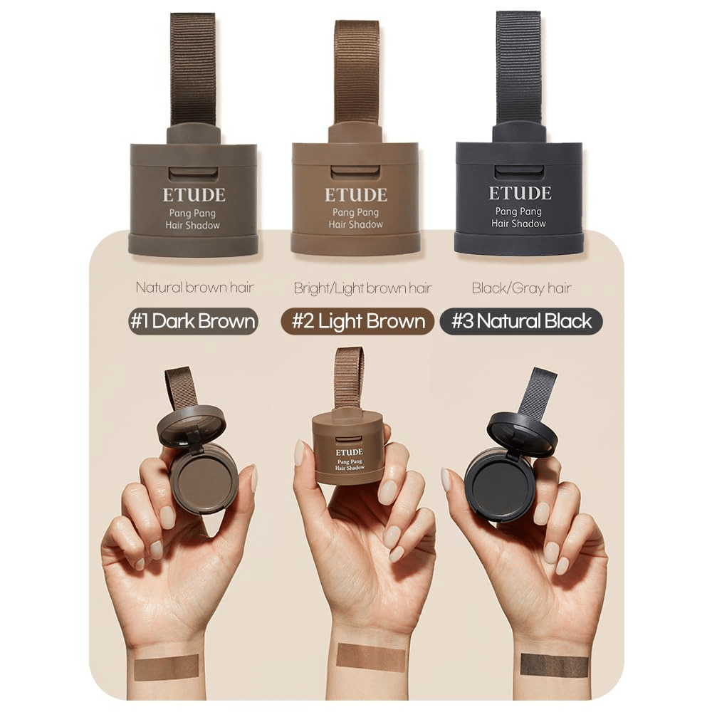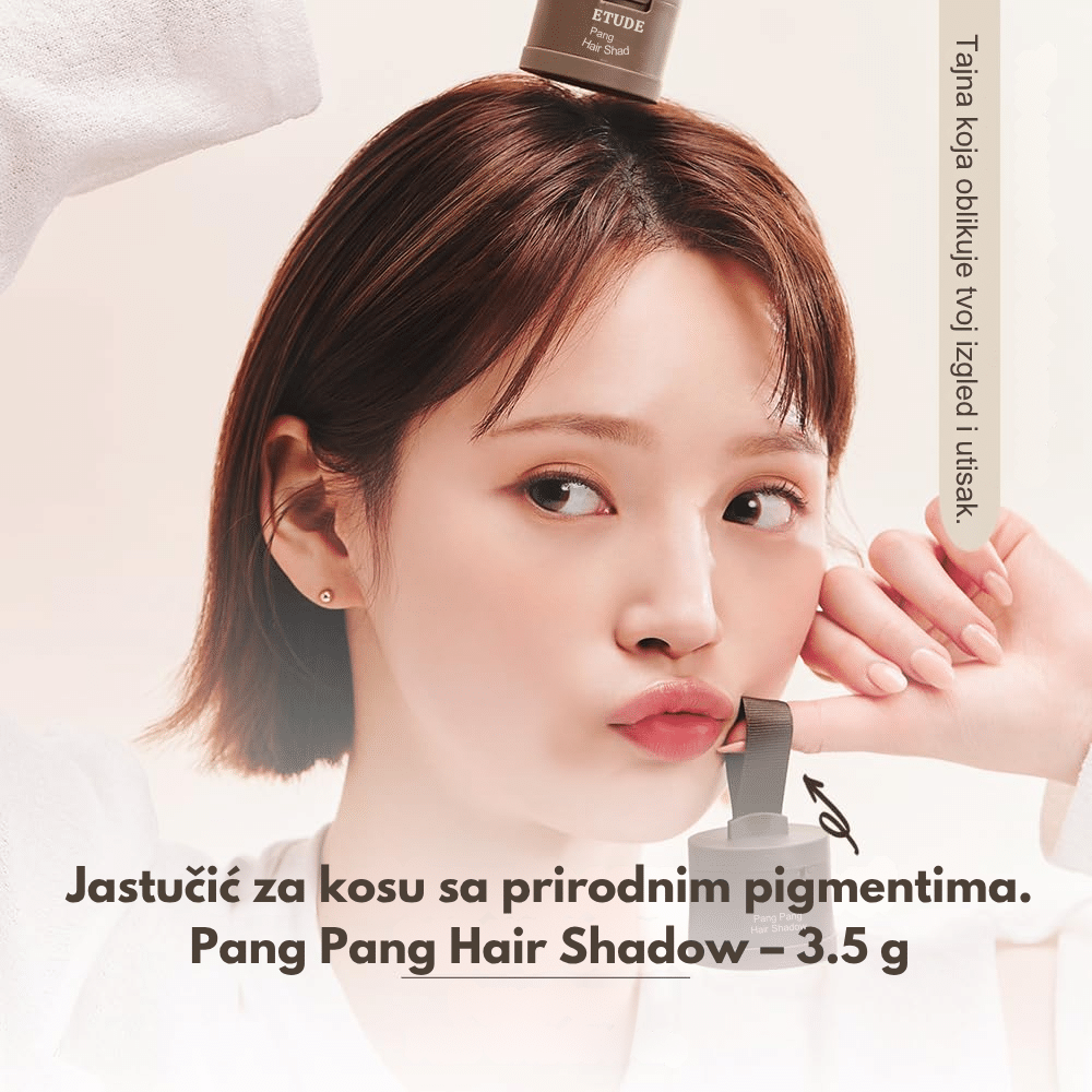 ETUDE Pang Pang Hair Shadow #01 Dark Brown je praktična kompakt senka za kosu i obrve koja trenutno popunjava prorede, vizuelno zgušnjava kosu i naglašava liniju rasta kose. Sa mekanom formulom i praktičnim aplikatorom u vidu sunđera, omogućava preciznu i kontrolisanu aplikaciju, a mat efekat osigurava prirodan rezultat bez težine, preslikavanja ili gomilanja proizvoda. Savršena je za ujednačavanje korena između farbanja, popunjavanje razdeljka, predela oko čela i obrva.