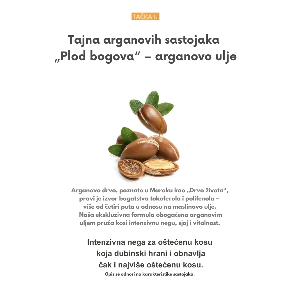 Hranljivi regenerator sa arganovim uljem koji obnavlja vlagu, zaglađuje kosu i olakšava raščešljavanje bez otežavanja.