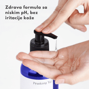 Pyunkang Yul Low pH Scalp Shampoo Jumbo 500 ml je blagi korejski šampon sa niskim pH vrednošću, namenjen osetljivom vlasištu i tankoj, lako opterećenoj kosi. Formula bez jakih sulfata i agresivnih površinski-aktivnih supstanci koristi prirodne aminokiseline i biljne ekstrakte, uključujući list masline čajevca (tea tree) i koren đumbira, da nežno čisti preteranu masnoću, umiruje iritacije i vraća ravnotežu vlasištu. Njegov jedinstveni nizak pH pomaže očuvanju prirodne zaštitne barijere vlasišta i sprječava isušivanje, dok podržava koren kose i njenu dugotrajnu snagu. Veoma pogodan za one koji se suočavaju sa suvim, izrazito masnim ili brzo prljavim korenima, kao i za osobe koje osećaju nelagodnost nakon pranja standardnim šamponima.