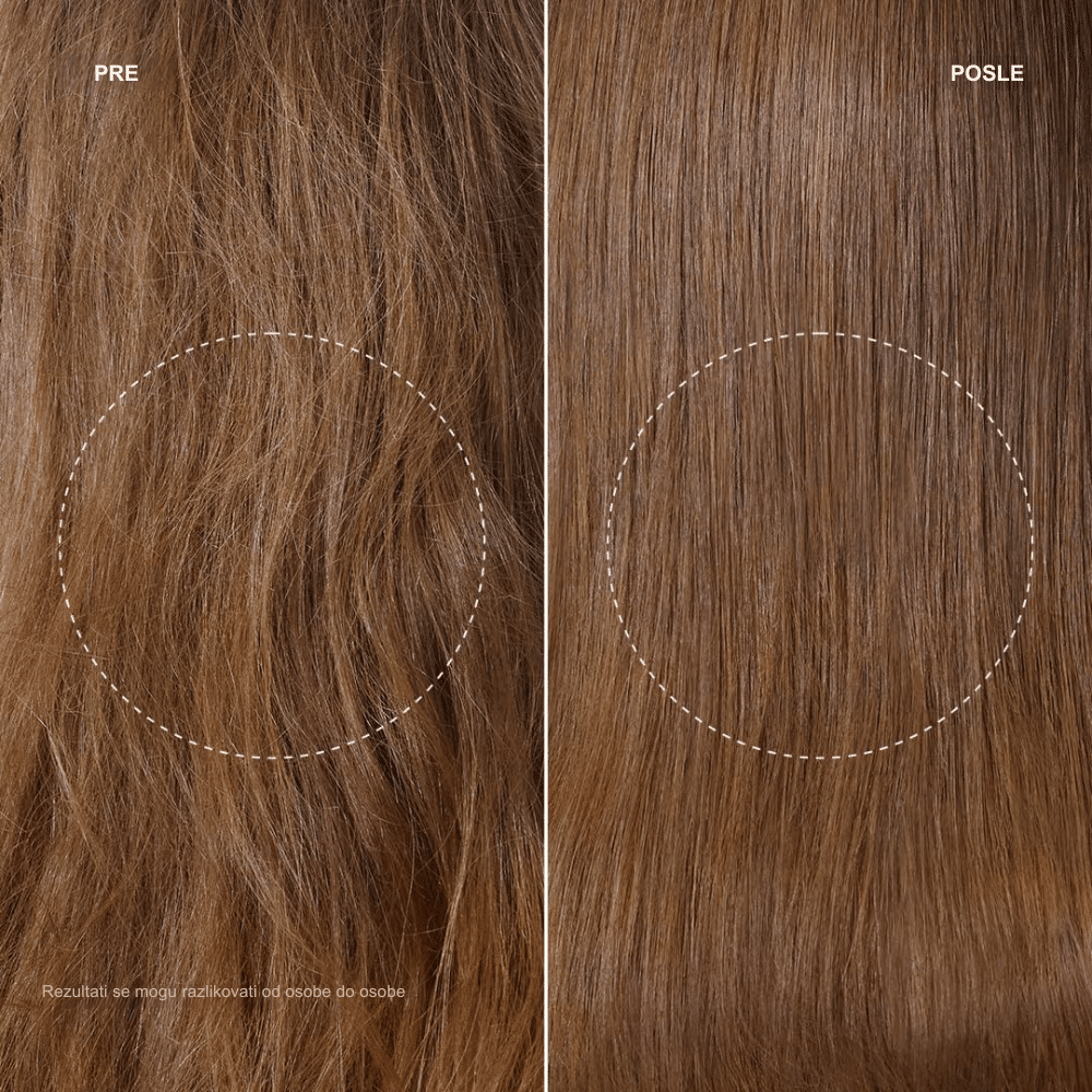 Intenzivni tretman sa keratinom i biljnim uljima obnavlja strukturu kose, vraća elastičnost i pruža dugotrajan sjaj i mekoću. Zajedno ostavljaju kosu vidljivo zdravijom, snažnijom i lakšom za raščešljavanje već nakon prvog korišćenja.