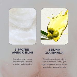 Ova regenerativna kombinacija namenjena je suvoj, oštećenoj i hemijski tretiranoj kosi kojoj je potrebna dubinska obnova i jačanje. Šampon sa proteinima i aminokiselinama nežno čisti kosu i teme, istovremeno hraneći vlas i pomažući u smanjenju lomljenja i ispucalih krajeva, bez isušivanja.