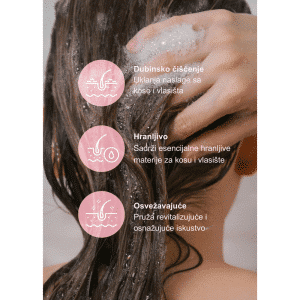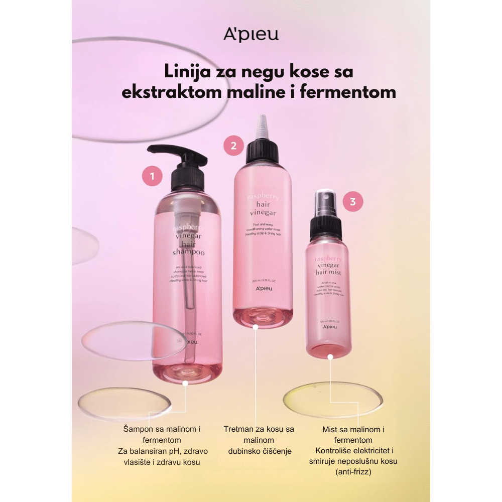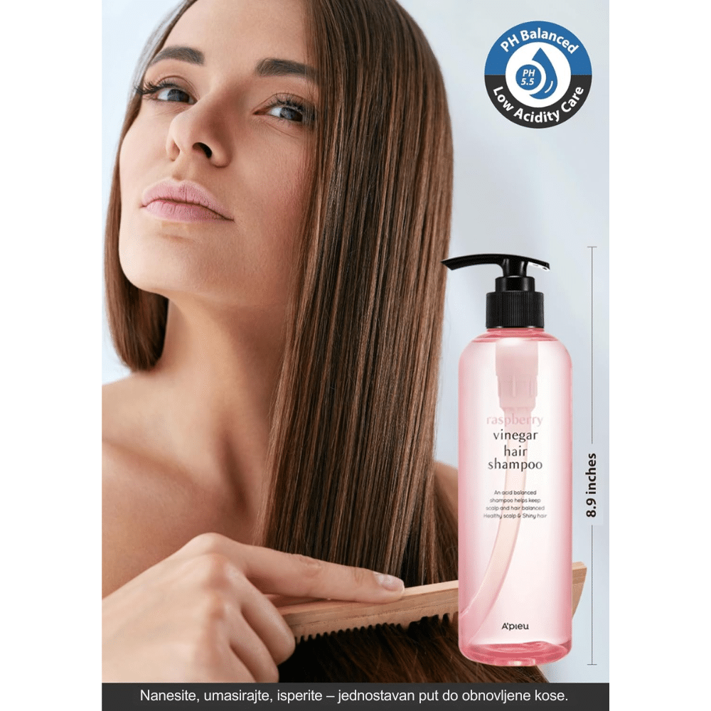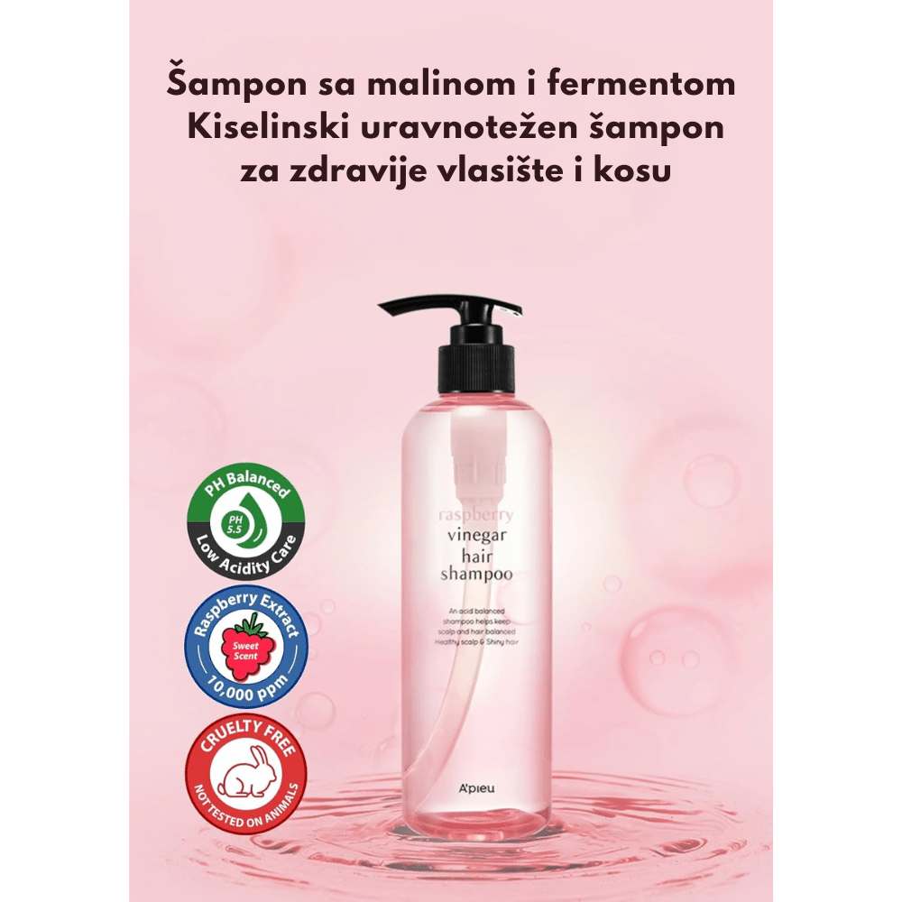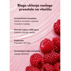 Osvežavajući šampon sa malinom i sirćetom koji čisti kosu, balansira pH i vraća prirodan sjaj bez isušivanja.