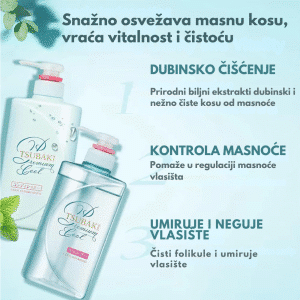 Osvežite kosu uz ledeni efekat mentola i ulje kamelije. Set dubinski obnavlja oštećenu dlaku, uklanja višak masnoće i pruža volumen uz neodoljiv sjaj bez otežavanja.