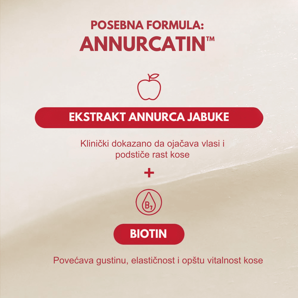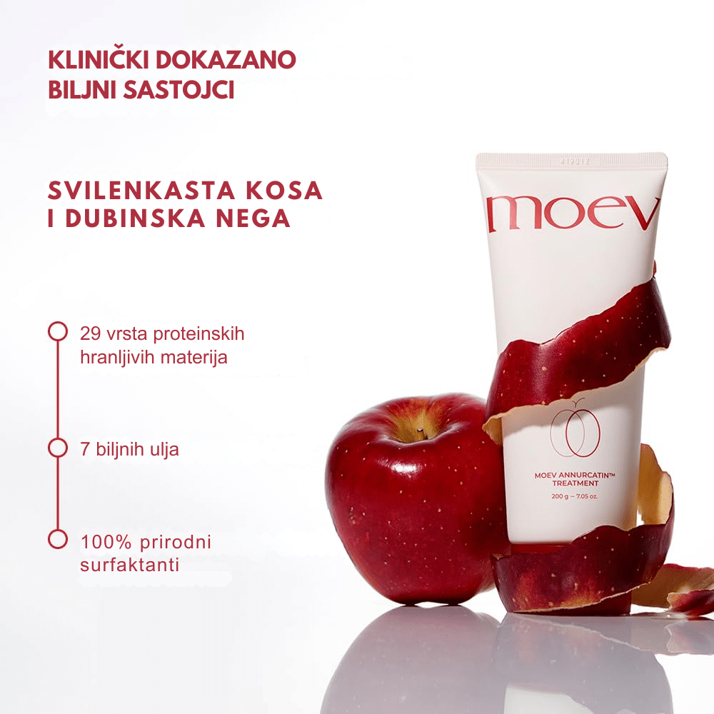 MOEV Annurcatin Treatment 200g je intenzivni tretman za kosu namenjen dubinskoj nezi, obnovi i jačanju oštećenih vlasi. Bogata, kremasta tekstura pomaže u zaglađivanju kutikule, smanjenju lomljenja i vraćanju mekoće i sjaja, dok kosu čini lakšom za raščešljavanje. Idealan je kao dopuna rutini sa Annurcatin linijom, posebno za kosu izloženu hemijskim tretmanima, toploti i spoljašnjim uticajima.