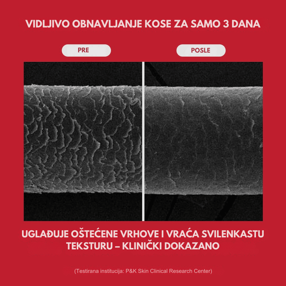 Intenzivni tretman za kosu koji obnavlja oštećene vlasi, zaglađuje teksturu i vraća mekoću i sjaj.