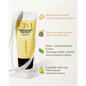 CP-1 Premium Hair Treatment 250ml je intenzivni tretman za kosu namenjen dubinskoj obnovi, jačanju i zaglađivanju oštećenih i hemijski tretiranih vlasi. Njegova bogata, ali uravnotežena formula pomaže u popunjavanju oštećenja u strukturi kose, poboljšava elastičnost i smanjuje lomljenje, dok kosu čini mekšom, sjajnijom i vidno zdravijom. Idealan je za redovnu negu kose izložene toplotnom stilizovanju, farbanju i spoljašnjim uticajima.