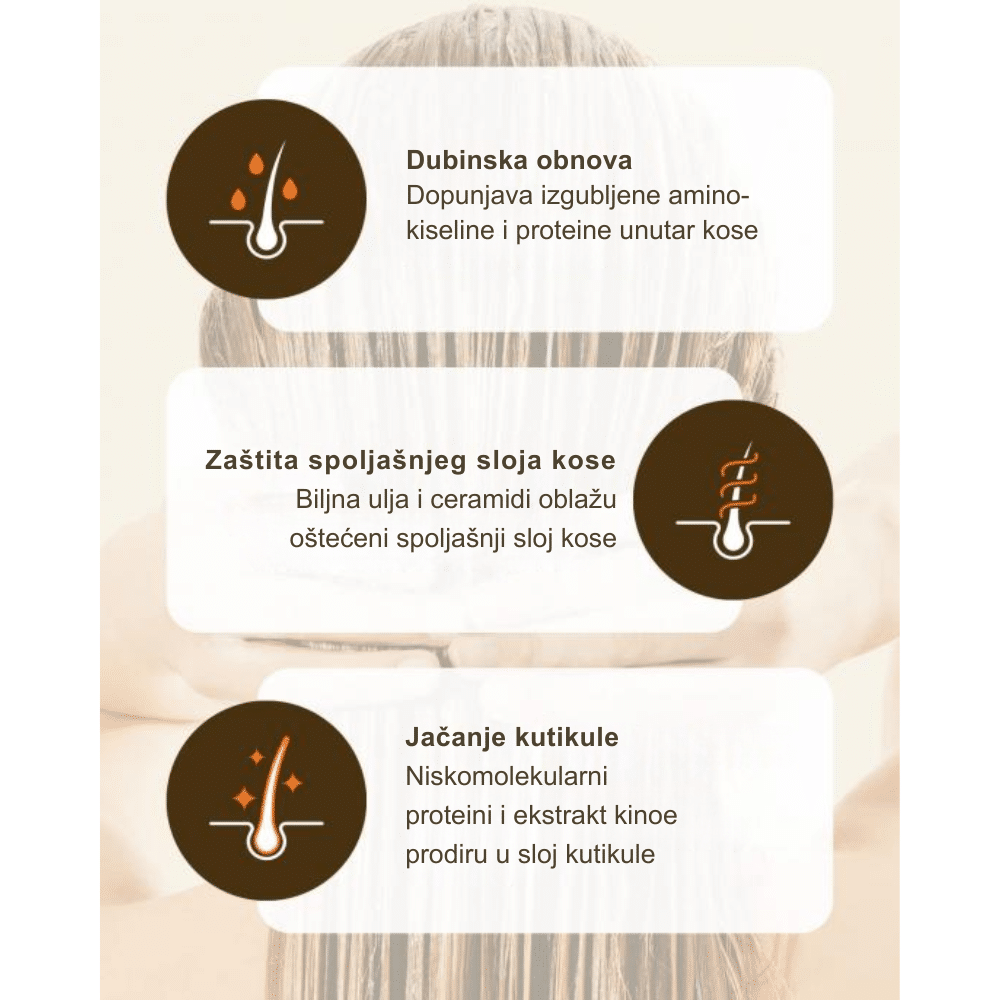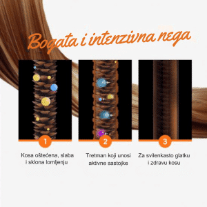 Intenzivni tretman koji obnavlja oštećenu kosu, jača vlasi i vraća mekoću, elastičnost i sjaj.
