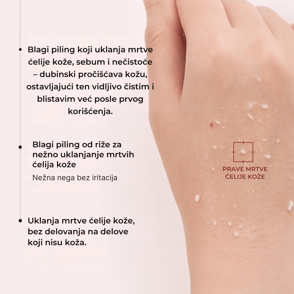 Piling-ampula sa crnim pirinčem, AHA/BHA/PHA i niacinamidom za čišće pore, glatkiju teksturu i svež ten.