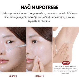 Nakon čišćenja lica i nežnog sušenja, nanesite odgovarajuću količinu ampule na lice (izbegavajući područje oko očiju i usana), nežno izmasirajte kako bi aktivni sastojci počeli delovati, potom temeljno isperite mlakom vodom. Koristite 1-2 puta nedeljno ili po potrebi vaše kože. Izbegavajte nostavljanje na oštećeno ili iritirano područje.