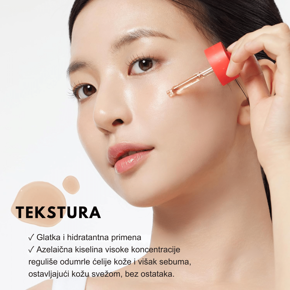 Umirujuća ampula sa azelaičnom kiselinom koja smanjuje crvenilo, nepravilnosti i jača barijeru kože.