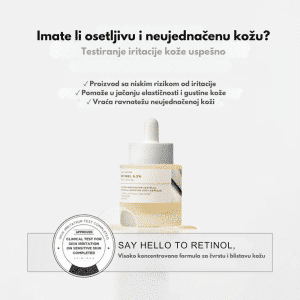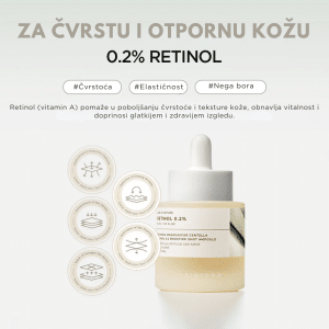 Retinol je oblik vitamina A koji se koristi u kozmetici zbog svojih anti-aging i regenerativnih svojstava. Pomaže u ubrzavanju obnove ćelija, smanjenju bora, poboljšanju elastičnosti kože i ujednačavanju tena. Takođe stimuliše proizvodnju kolagena, čineći kožu čvršćom i glatkijom. Osim što deluje protiv starenja, retinol pomaže u regulisanju lučenja sebuma i čišćenju pora, zbog čega je koristan i za masnu i problematičnu kožu sklonu aknama. Zbog svoje jačine, retinol može izazvati iritaiciju i suvoću, pa se preporučuje postepeno uvođenje u rutinu i korišćenje uz hidratantne proizvode i SPF zaštitu.