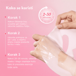 Nakon čišćenja i toniranja, nanesite 2–3 kapi ampule na lice i vrat i lagano utapkajte dok se potpuno ne upije. Zatim nanesite gel masku i ostavite da deluje 15–20 minuta. Nakon uklanjanja maske, nežno utapkajte preostalu esenciju. Ampulu koristiti svakodnevno, a masku 1–2 puta nedeljno ili po potrebi.