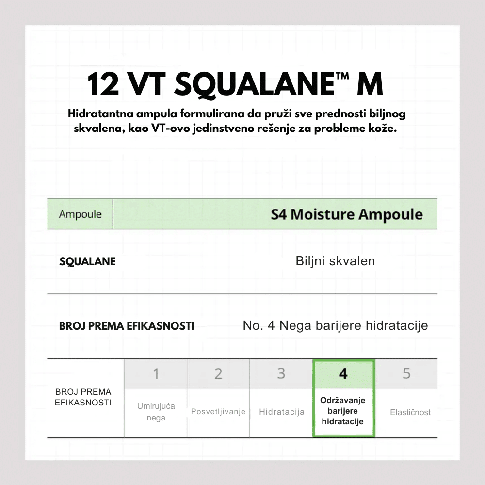 VT Cosmetics S4 Moisture Ampoule je hidratantna ampula koja intenzivno vlaži kožu i pomaže u jačanju njene barijere.