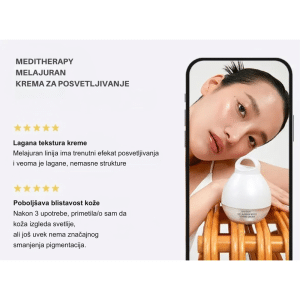 Meditherapy je korejski brend koji kombinuje naučno razvijene formule i napredne dermatološke pristupe kako bi pružio ciljanu negu kože. Fokusiran je na regeneraciju, jačanje barijere i umirivanje iritacija kroz visoko funkcionalne, nežne i stabilne sastojke. Brend je prepoznatljiv po minimalističkim formulacijama koje donose maksimalnu efikasnost, posebno kod suve, osetljive i narušene kože. Meditherapy povezuje profesionalnu negu i svakodnevnu upotrebljivost, pružajući vidljive i dugotrajne rezultate.