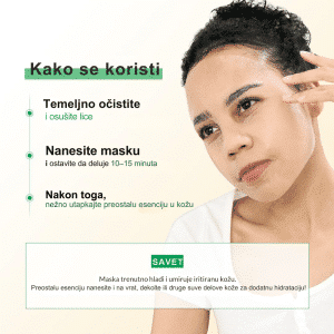 Nakon čišćenja i toniranja kože, pažljivo izvadite masku i nanesite je na lice. Ostavite da deluje 15–20 minuta, zatim uklonite i nežno utapkajte preostalu esenciju dok se potpuno ne upije. Nije potrebno ispiranje. Preporučuje se upotreba 2–3 puta nedeljno ili po potrebi kada je koža suva ili iziritirana. Izbegavati kontakt sa očima i ne koristiti na oštećenoj koži.