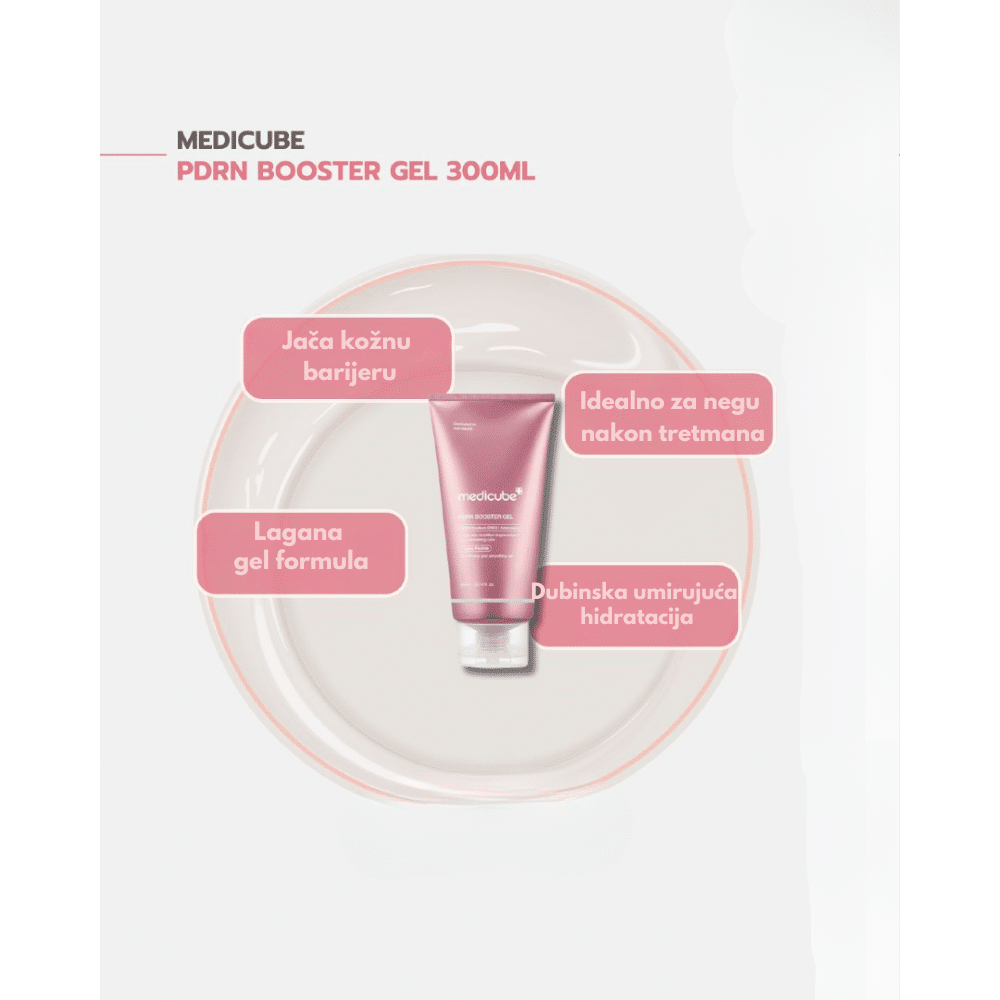 Medicube PDRN Booster Gel je hidratantni gel formulisan za poboljšanje elastičnosti kože, smanjenje znakova starenja i pružanje intenzivne hidratacije. Obogaćen je PDRN-om (Polideoksiribonukleotid), koji podržava regeneraciju kože i poboljšava njenu čvrstinu. Dodatno, niacinamid pomaže u ujednačavanju tena i smanjenju hiperpigmentacija, dok hijaluronska kiselina pruža dubinsku hidrataciju. Kompleks od sedam peptida stimuliše proizvodnju kolagena i poboljšava teksturu kože. Gel je lagane teksture, brzo se upija i pruža osvežavajući osećaj na koži.