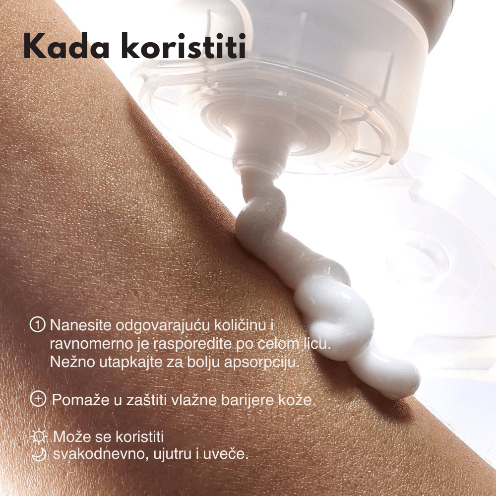 Dubinski hrani kožu, jača zaštitnu barijeru i umiruje crvenilo, pružajući laganu i dugotrajnu hidrataciju bez masnog sjaja.