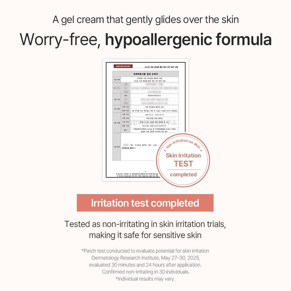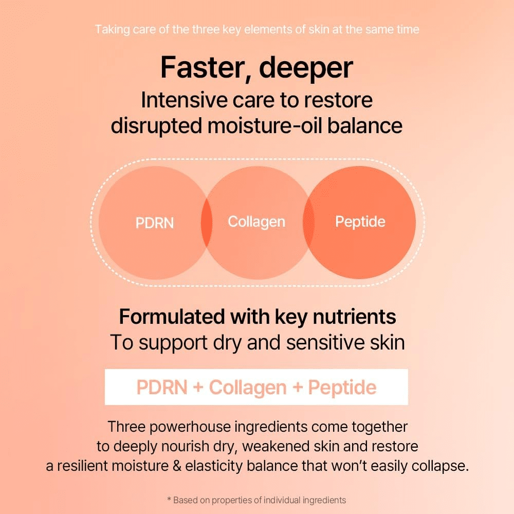 Water, Sodium DNA (PDRN), Hydrolyzed Collagen, Niacinamide, Adenosine, Panthenol, Sodium Hyaluronate, Allantoin, Glycerin, Butylene Glycol, Arginine, Carbomer, Disodium EDTA, Ethylhexylglycerin, Phenoxyethanol.