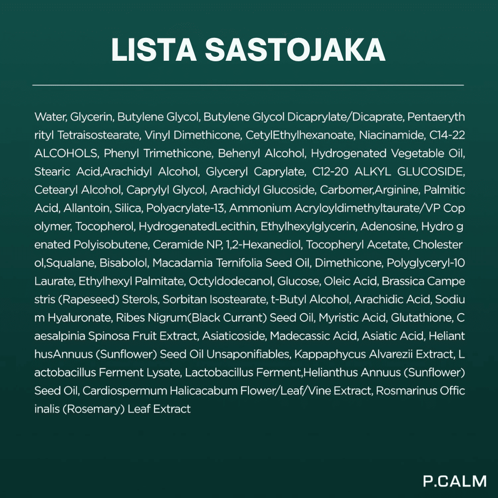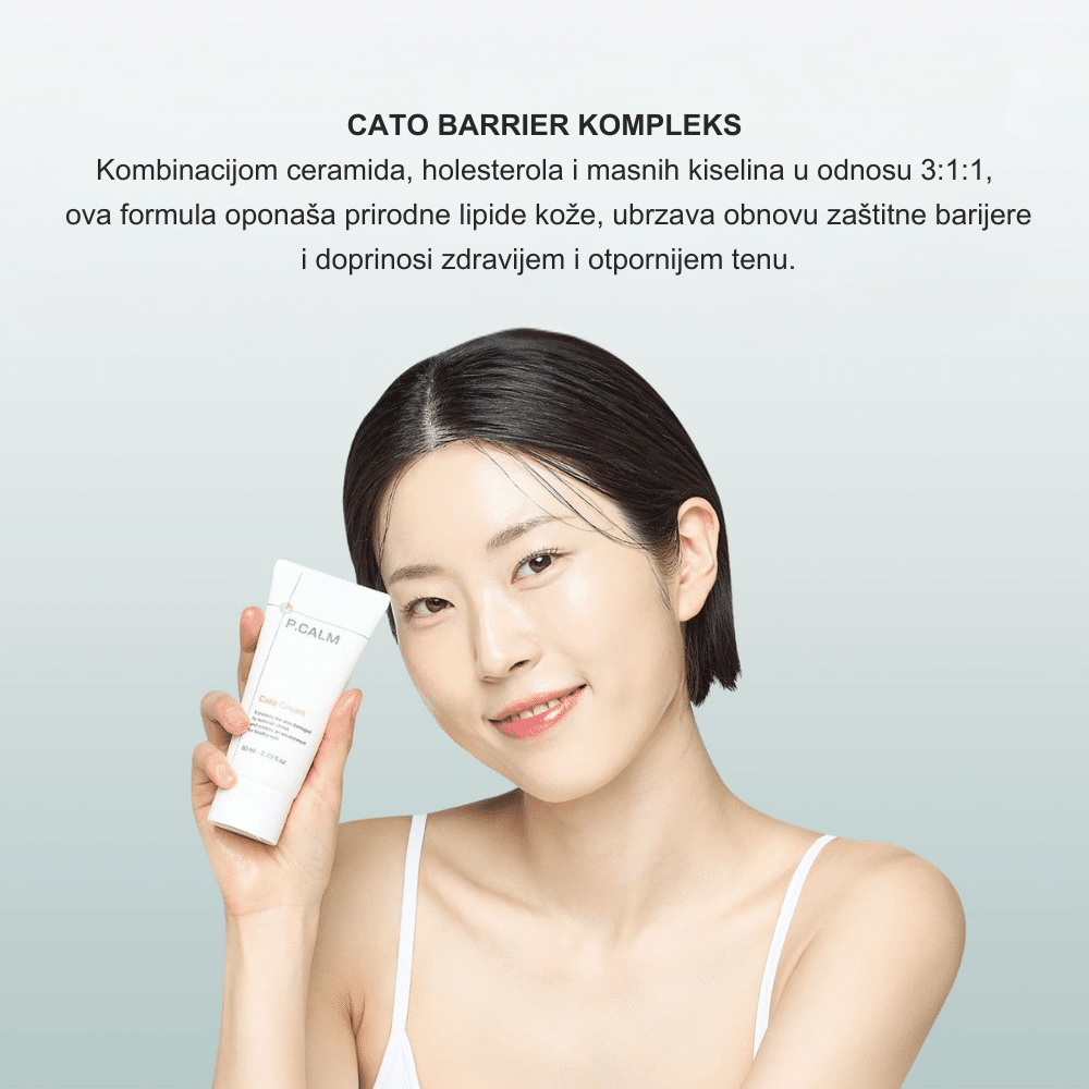 P.CALM Cato Cream je barijerna krema visokih performansi, razvijena kroz rigorozna klinička ispitivanja kako bi rešila probleme ekstremno osetljive, suve i oštećene kože. Inspirisana strukturom ljudske kože, ova krema koristi Cato Barrier™ kompleks, koji precizno replicira prirodni odnos lipida u koži (Ceramidi, Holesterol i Masne kiseline). Za razliku od običnih hidratantnih krema, Cato Cream ne samo da dodaje vlagu, već bukvalno “krpi” rupe u zaštitnoj barijeri, sprečavajući transepidermalni gubitak vode (TEWL) i štiteći lice od spoljnih iritansa.Njena formula je hipoalergena i nekomedogena, što je čini retkim draguljem među bogatim kremama – pruža dubinsku ishranu bez začepljenja pora ili izazivanja akni. Tekstura je svilenkasta i brzo se upija, ostavljajući kožu mekom i zaštićenom tokom celog dana. P.CALM je brend koji se fokusira na “mirnu kožu”, pa je ova krema idealna za osobe koje se oporavljaju od jakih tretmana (retinola, kiselina) ili pate od hronične osetljivosti, ekcema i perutanja.