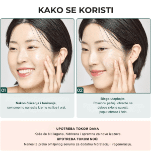 Kremu nanesite kao poslednji korak u jutarnjoj i večernjoj rutini nege. Uzmite odgovarajuću količinu i ravnomerno je rasporedite po licu i vratu. Nežno masirajte dok se potpuno ne upije. Kod izuzetno suve kože ili oštećene barijere, možete naneti tanak dodatni sloj na kritične regije (poput obraza ili oko nosa) pre spavanja. Zbog svoje nežne formule, savršena je za korišćenje nakon hemijskih pilinga ili tretmana retinolom kako bi se smanjila mogućnost iritacije.