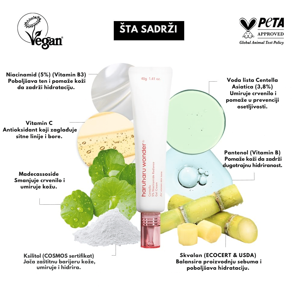 Haruharu WONDER Centella 5% Niacinamide Radiance Gel Cream je lagana gel-krema koja hidrira, posvetljuje i poboljšava teksturu kože. Formulisana sa centellom i niacinamidom, pruža balans i zdrav sjaj.
