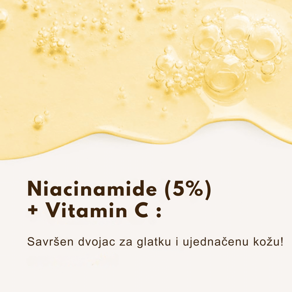 Niacinamide (nikotinamid) je oblik vitamina B3, poznat po svojoj svestranosti i blagom, ali efikasnom dejstvu na kožu. Pomaže u regulisanju proizvodnje sebuma, što ga čini odličnim za masnu i kombinovanu kožu, jer smanjuje višak masnoće i doprinosi matiranom izgledu tena. Osim toga, umiruje kožu i smanjuje crvenilo i iritacije, zbog čega je koristan i za osetljivu i problematičnu kožu sklonu aknama. Jedna od njegovih najpoznatijih prednosti je sposobnost ujednačavanja tena i smanjenja tamnih mrlja i hiperpigmentacija, čineći kožu svetlijom i zdravijom. Takođe, niacinamide jača zaštitnu barijeru kože, poboljšava hidrataciju i pomaže u sprečavanju gubitka vlage, što ga čini pogodnim i za suve tipove kože. Zahvaljujući svojim antioksidativnim svojstvima, štiti kožu od spoljašnjih agresora poput zagađenja i UV zračenja, pomažući u sprečavanju preranog starenja. Zbog svoje blage i neiritirajuće formule, niacinamide je pogodan za sve tipove kože i često se koristi u serumima, kremama i tonicima kao ključni sastojak za zdrav i uravnotežen ten.