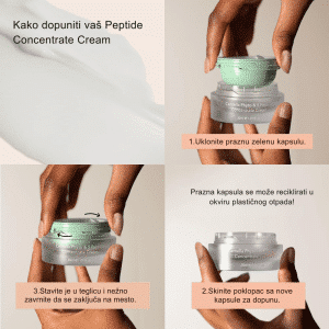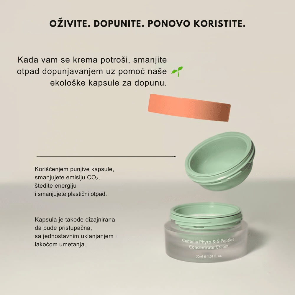 Koncentrovana krema sa centellom i peptidima za obnovu i elastičnost kože.