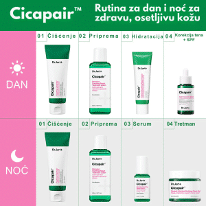 Dr. Jart+ Cicapair Intensive Soothing Repair Cream je intenzivna obnavljajuća krema koja koristi moć centelle (Cica) i napredni Jartbiome™ probiotik kompleks za dubinsko umirenje, obnovu i jačanje osetljive i iritirane kože. Formulisana da smanji crvenilo, ojača kožnu barijeru i pruži trenutni osećaj olakšanja, ova krema ostavlja kožu hidriranom, zaglađenom i otpornijom na spoljašnje stresove.