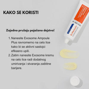 Dr. Melaxin Exosome Repair Cream je napredna regenerativna krema formulisana sa eksosomima i aktivnim sastojcima koji pomažu obnovu kože, jačanje kožne barijere i poboljšanje ukupne teksture kože. Namenjena je koži sa znakovima oštećenja, umora i gubitka elastičnosti, pružajući intenzivnu negu, hidrataciju i umirujući efekat. Redovnom upotrebom koža postaje glatkija, otpornija i vidljivo zdravijeg izgleda.