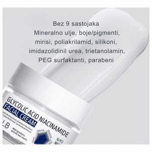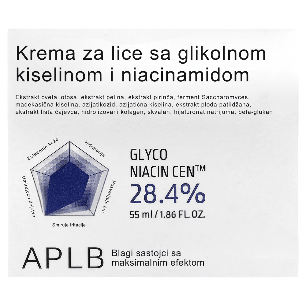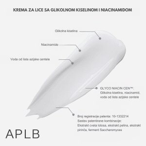 APLB Glycolic Acid Niacinamide Facial Cream poboljšava teksturu kože i doprinosi ujednačenijem tenu. Glikolna kiselina pomaže uklanjanju mrtvih ćelija, dok niacinamid osvežava izgled kože.
