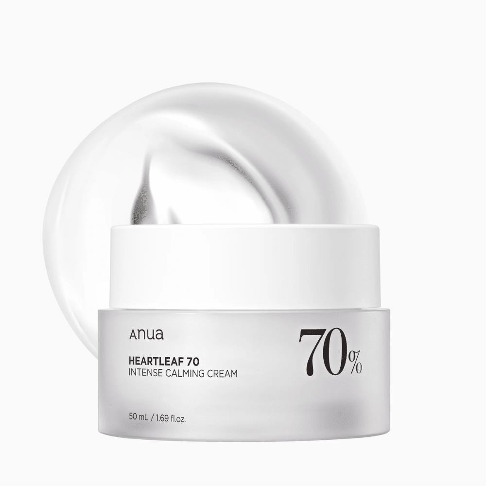 Anua Heartleaf 70% Intense Calming Cream je hidratantna krema formulisana sa 70% ekstrakta biljke Heartleaf (Houttuynia Cordata), poznate po svojim umirujućim i antiinflamatornim svojstvima. Ova krema je posebno formulisana za osetljivu i suvu kožu, pružajući intenzivnu hidrataciju i jačanje kožne barijere zahvaljujući prisustvu ceramida i pantenola. Njena lagana, nemasna tekstura omogućava brzo upijanje, ostavljajući kožu mekom, hidriranom i umirenom.