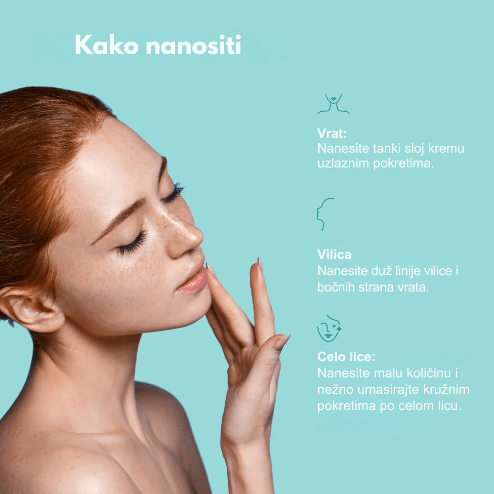 Nakon čišćenja i toniranja kože, nanesite odgovarajuću količinu kreme na lice i vrat. Blago umasirajte dok se potpuno ne upije. Koristite ujutru i/ili uveče. Ako je ujutru, završite negu sa zaštitom od sunca. Izbegavajte kontakt sa očima i oštećenom kožom.