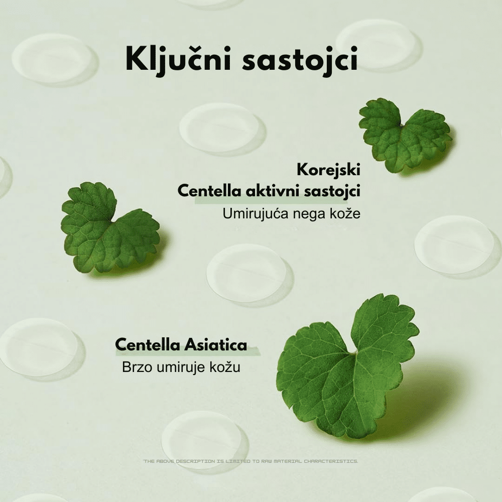 Centella Asiatica, poznata i kao "tigrova trava" i CICA, je biljka bogata umirujućim, regenerativnim i hidratantnim svojstvima, zbog čega je jedan od najcenjenijih sastojaka u kozmetici. Tradicionalno se koristi za ubrzavanje zarastanja rana i jačanje zaštitne barijere kože, a danas je posebno popularna u nezi osetljive, iritirane i problematične kože. Centella Asiatica sadrži aktivne komponente poput Madecassoside, Asiaticoside, Asiatic Acid i Madecassic Acid, koje pomažu u smanjenju crvenila, umirivanju upala i poboljšanju elastičnosti kože. Takođe je bogata antioksidansima koji štite kožu od slobodnih radikala i usporavaju proces starenja. Zbog svoje sposobnosti da hidrira, obnavlja i umiruje, često se koristi u serumima, kremama i tonerima namenjenim suvoj, osetljivoj i iritiranoj koži, ali i kod kože sklone aknama.