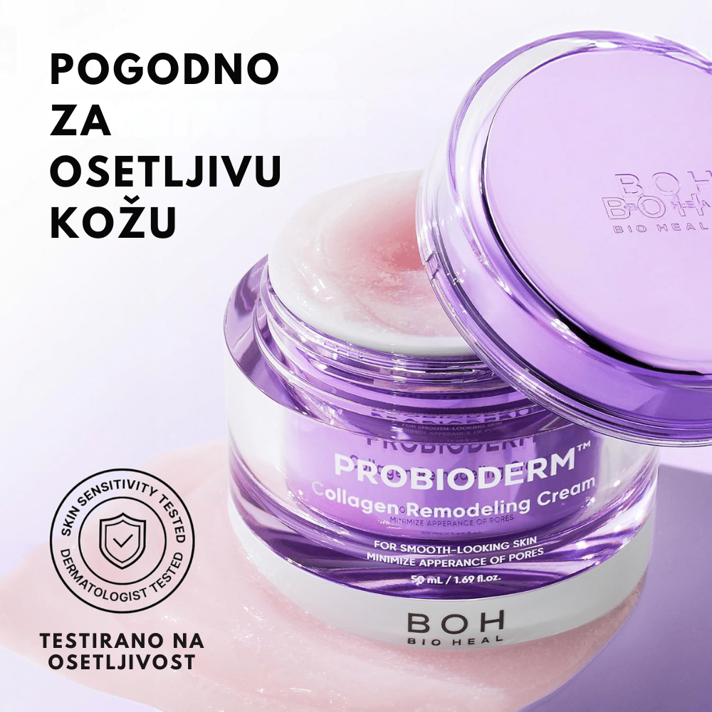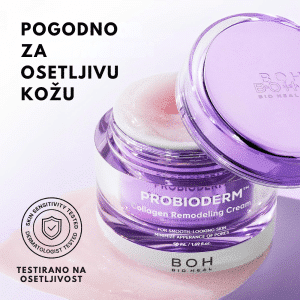 BIOHEAL BOH Probioderm Collagen Remodeling Cream je bogata, ali nežna krema koja kombinuje probiotike, peptide i kolagenske komplekse kako bi intenzivno ojačala kožnu barijeru i poboljšala elastičnost kože. Formulisana da poveća čvrstinu, smanji vidljivost bora i pruži dubinsku hidrataciju, ova krema obnavlja volumen i vraća koži glatkoću i punoću. Idealna je za kožu koja traži regeneraciju, zatezanje i intenzivnu negu protiv starenja.