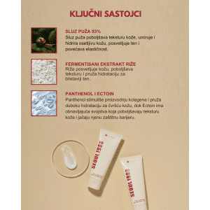 Bogata krema sa 93% snail mucina i pirinčem koja regeneriše, hidrira i posvetljuje kožu.