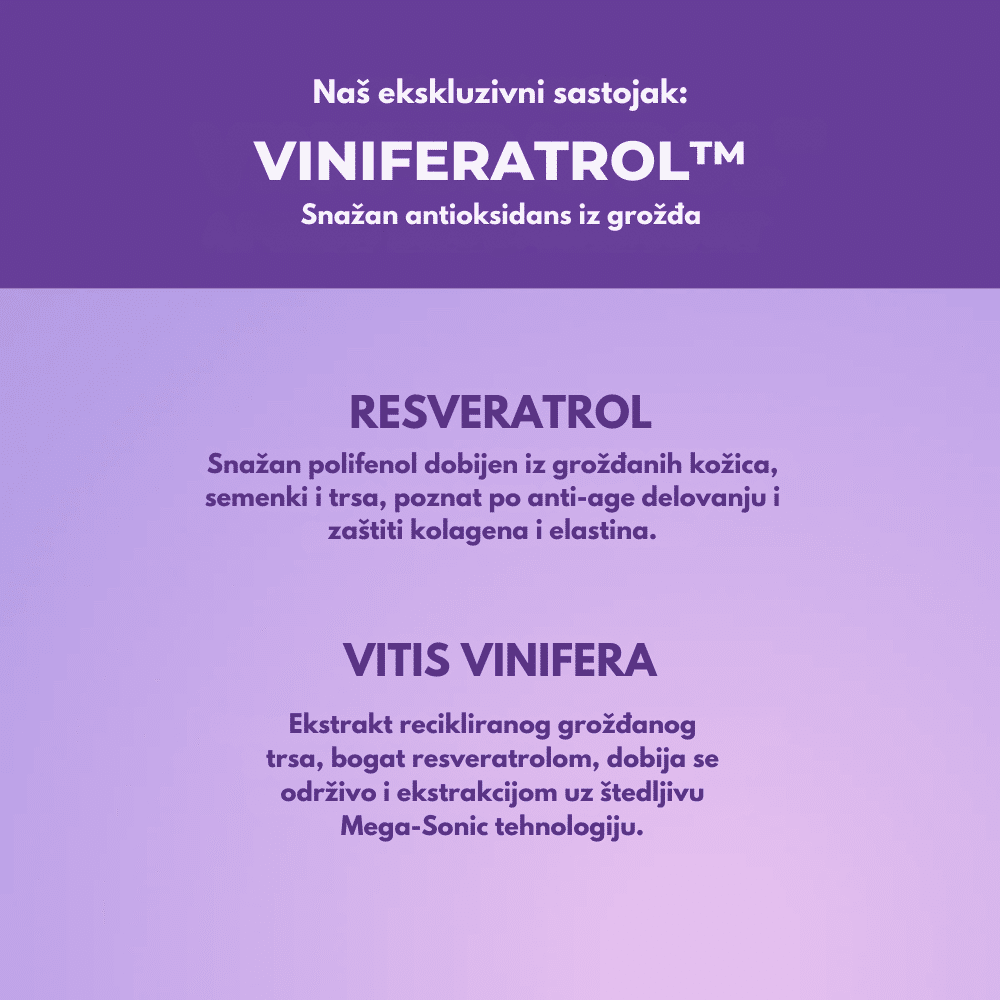 Intenzivna učvršćujuća krema sa antioksidantima iz grožđa. Vraća koži elastičnost, dubinski hidrira i pruža lifting efekat za čvršću i vidno mlađu kožu lica.