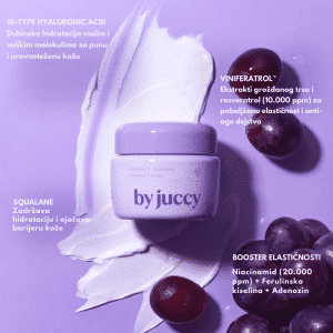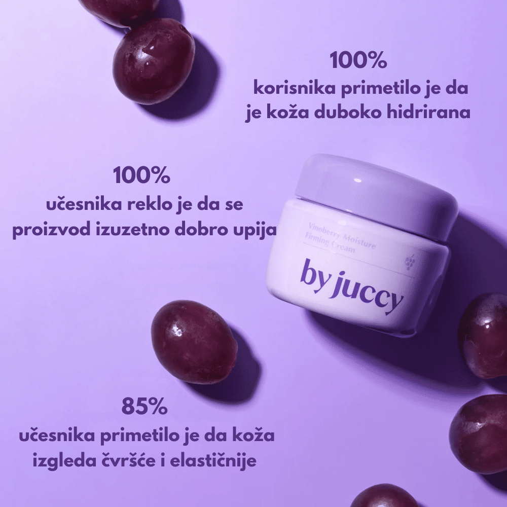 by juccy sa ponosom predstavlja Vinoberry Moisture Firming kremu, intenzivni hidratantni tretman koji spaja moć antioksidanata iz grožđa i bobičastog voća sa naprednim lifting efektom. Ova krema je dizajnirana da vrati koži izgubljenu elastičnost i čvrstinu, dok istovremeno pruža dubinsku hidrataciju koja traje tokom celog dana. Njena bogata, ali nemasna tekstura stvara zaštitni sloj koji sprečava gubitak vlage, ostavljajući kožu vidno popunjenijom, zaglađenijom i revitalizovanom.