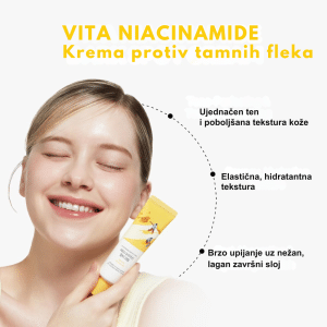 Niacinamide (nikotinamid) je oblik vitamina B3, poznat po svojoj svestranosti i blagom, ali efikasnom dejstvu na kožu. Pomaže u regulisanju proizvodnje sebuma, što ga čini odličnim za masnu i kombinovanu kožu, jer smanjuje višak masnoće i doprinosi matiranom izgledu tena. Osim toga, umiruje kožu i smanjuje crvenilo i iritacije, zbog čega je koristan i za osetljivu i problematičnu kožu sklonu aknama. Jedna od njegovih najpoznatijih prednosti je sposobnost ujednačavanja tena i smanjenja tamnih mrlja i hiperpigmentacija, čineći kožu svetlijom i zdravijom. Takođe, niacinamide jača zaštitnu barijeru kože, poboljšava hidrataciju i pomaže u sprečavanju gubitka vlage, što ga čini pogodnim i za suve tipove kože. Zahvaljujući svojim antioksidativnim svojstvima, štiti kožu od spoljašnjih agresora poput zagađenja i UV zračenja, pomažući u sprečavanju preranog starenja. Zbog svoje blage i neiritirajuće formule, niacinamide je pogodan za sve tipove kože i često se koristi u serumima, kremama i tonicima kao ključni sastojak za zdrav i uravnotežen ten.
