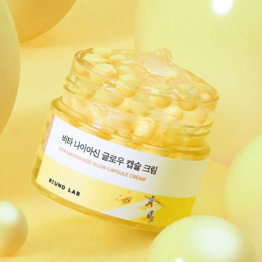ROUND LAB Vita Niacinamide Glow Capsule Cream je lagana posvetljujuća krema sa vidljivim vitaminskim kapsulama koje se tope na koži, oslobađajući niacinamid i kompleks vitamina za ujednačen, blistav i zdrav ten. Formula umiruje iritacije, jača kožnu barijeru i hidratizira bez težine, dok niacinamid smanjuje tamne fleke i crvenilo. Idealan izbor za kožu kojoj nedostaje sjaj, ujednačenost i hidratacija.