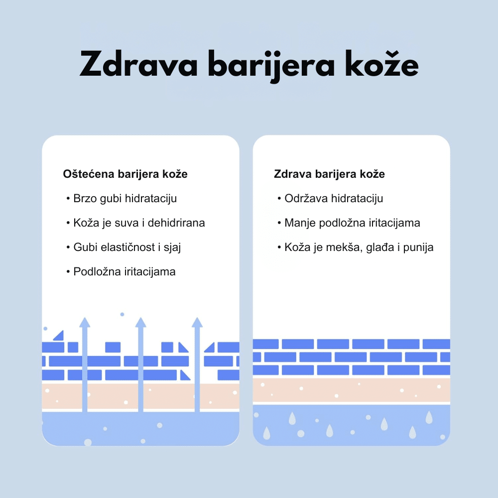 Plava hijaluronska kiselina (Blue Hyaluronic Acid) je inovativna verzija hijaluronske kiseline obogaćena fermentisanim morskim algama, poznata po svojoj poboljšanoj sposobnosti hidratacije i regeneracije kože. Ova vrsta hijaluronske kiseline ima sitnije molekule od standardne, što joj omogućava dublju apsorpciju u kožu i intenzivniju hidrataciju. Najčešće se koristi u serumima, kremama, esencijama i maskama, gde pomaže u zadržavanju vlage, poboljšanju elastičnosti i jačanju barijere kože. Osim što pruža dugotrajnu hidrataciju, plava hijaluronska kiselina deluje i umirujuće, smanjujući iritacije i crvenilo, zbog čega je pogodna za sve tipove kože, uključujući suvu, osetljivu i dehidriranu. Njena antioksidativna svojstva pomažu u zaštiti kože od spoljašnjih uticaja i prevremenog starenja, čineći ten blistavijim, svežijim i zdravijim.