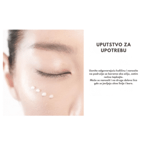 Nakon čišćenja i toniranja kože, nanesite male količine kreme na područje oko očiju (gornje kapke i ispod očiju), nežno utapkajte vrhovima prstiju dok se potpuno ne upije. Koristite ujutru i/ili uveče. U slučaju iritacije prekinite upotrebu.