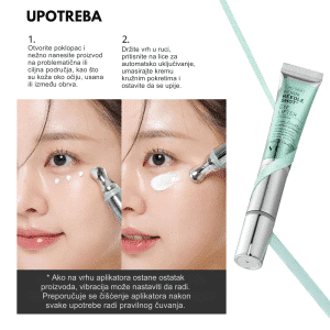 Nanesiti malu količinu na područje oko očiju i nežno utapkati. Koristiti ujutru i uveče, pre kreme za lice.