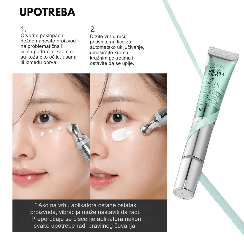 VT Cosmetics PDRN Reedle Shot Eye Lifter je tretman za područje oko očiju namenjen poboljšanju čvrstoće i izgleda kože. Pomaže u zaglađivanju finih linija i pruža osećaj zategnutosti i osveženja.