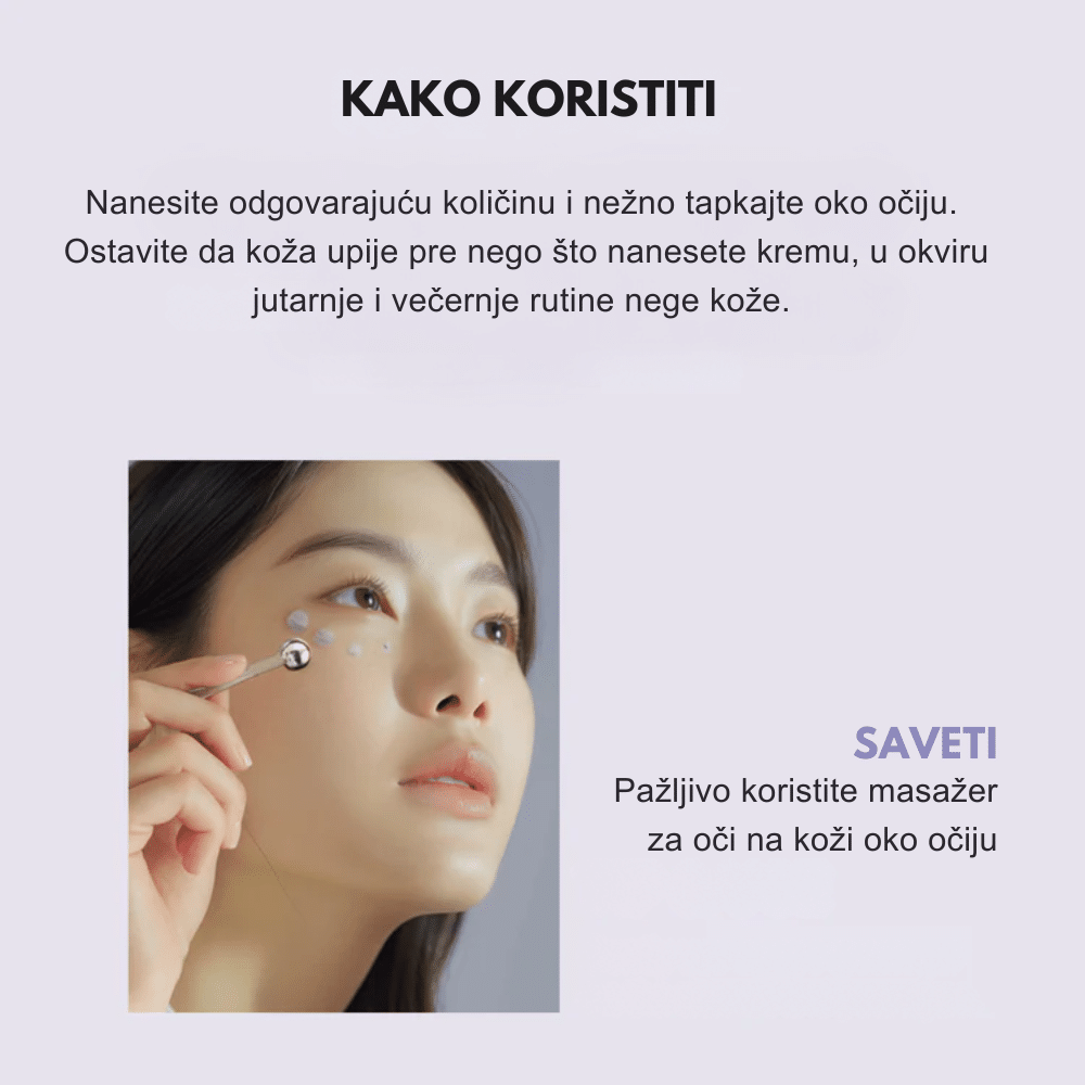 Nanesite malu količinu Heimish Rx Retinol Bakuchiol Eye Cream na područje oko očiju, izbegavajući direktan kontakt sa očima. Lagano tapkajte dok se potpuno ne upije. Koristite uveče kao poslednji korak u rutini nege, jer retinol može povećati osetljivost na sunce. Preporučuje se korišćenje sa SPF zaštitom tokom dana.