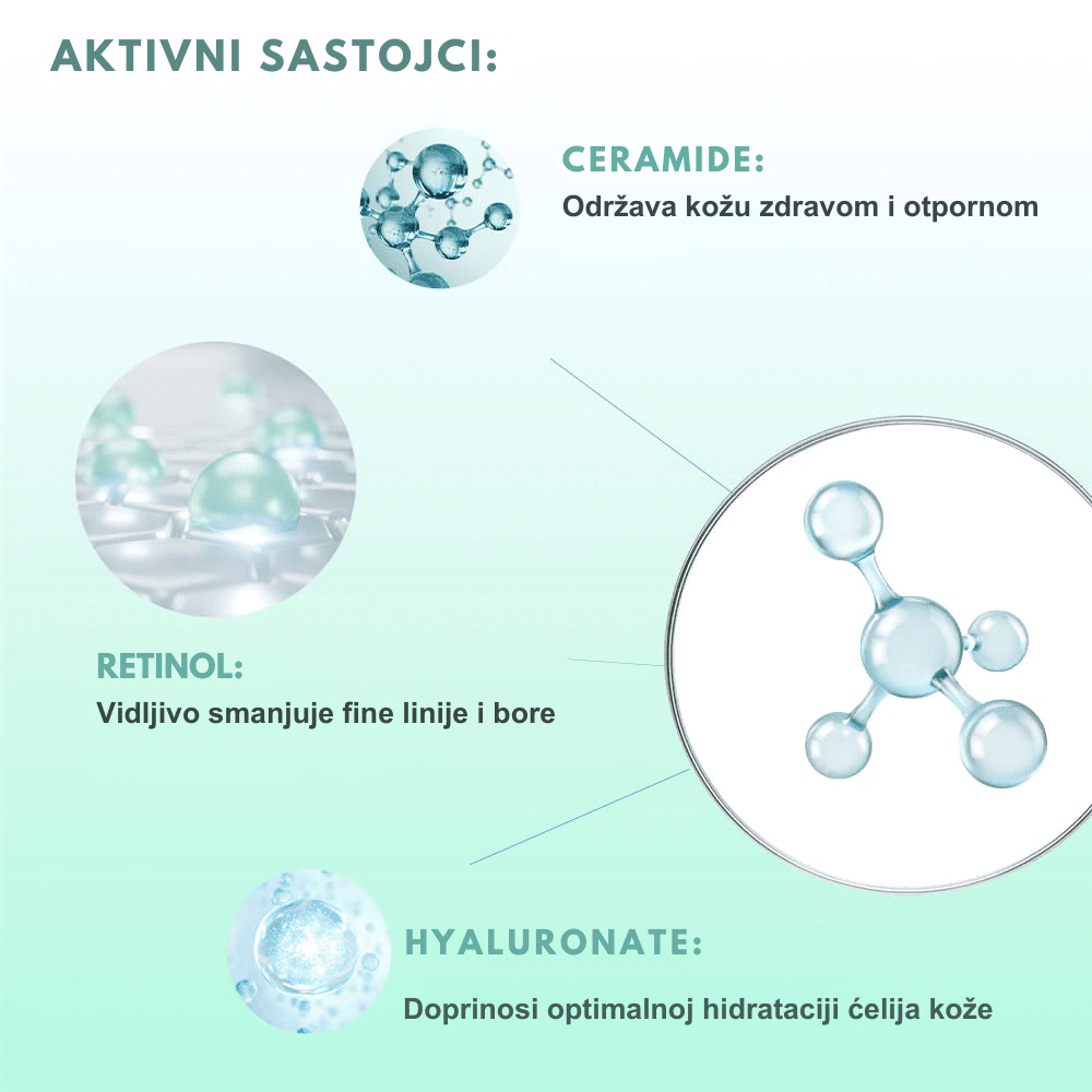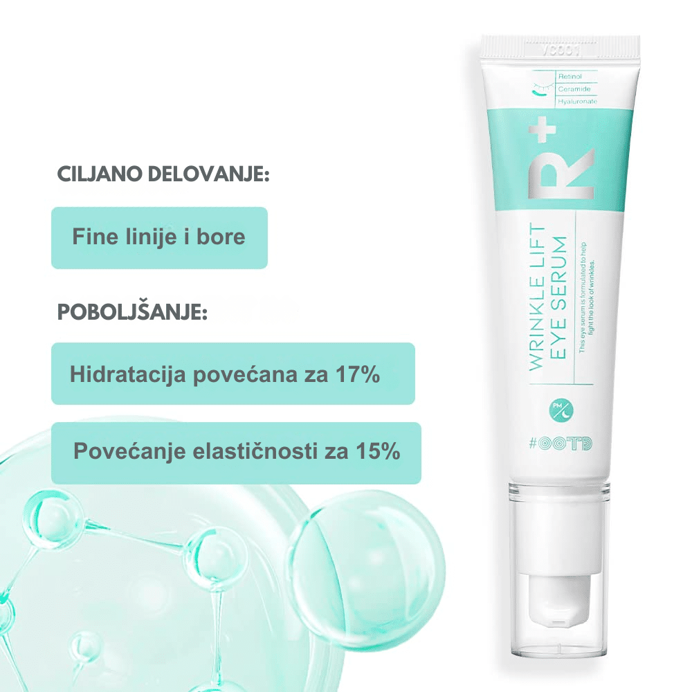 Serum za oči koji smanjuje bore i tamne krugove, hidrira i osvežava kožu oko očiju, pružajući mladalački izgled.