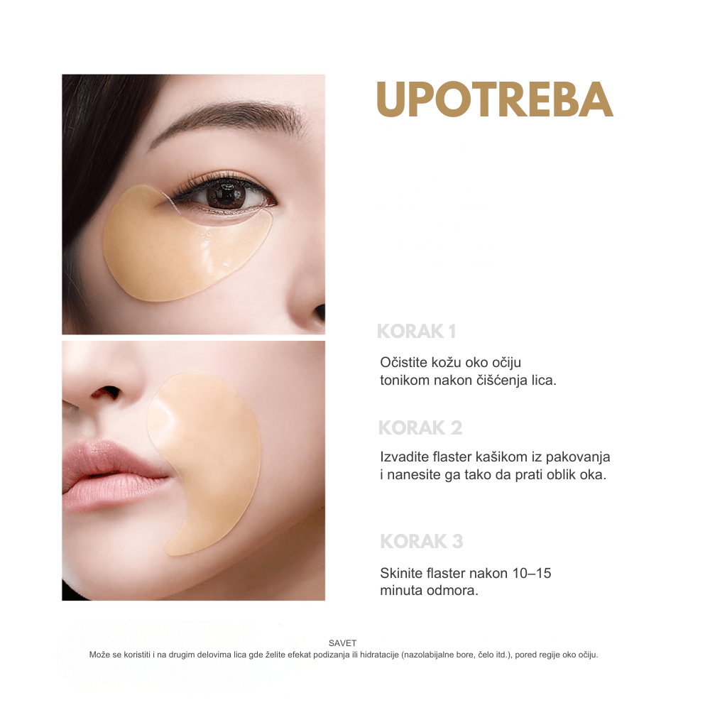 Hidrogel flasteri koji umanjuju otečenost i umor, hidriraju i osvežavaju okoloočnu zonu uz zlatne čestice i matični mleč.