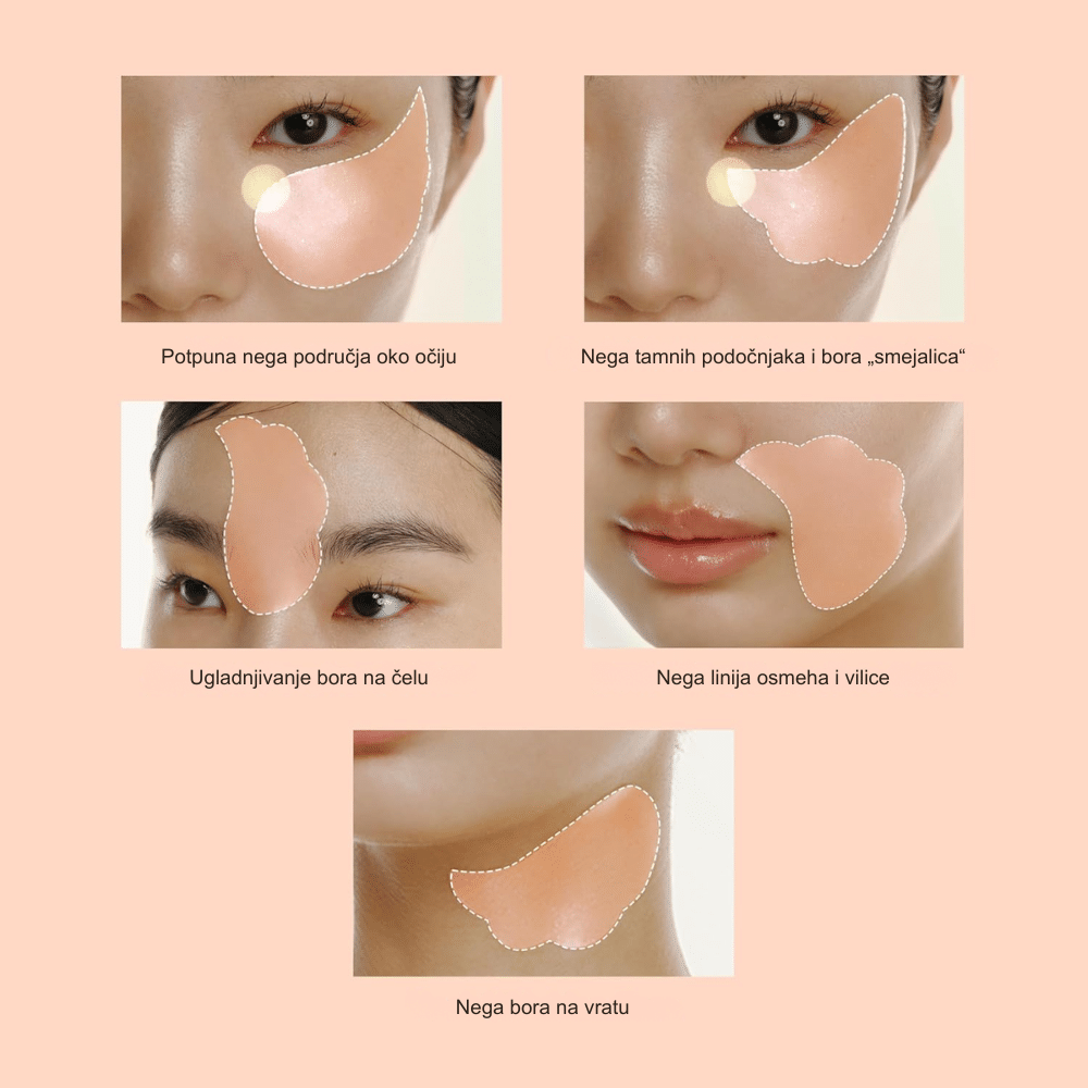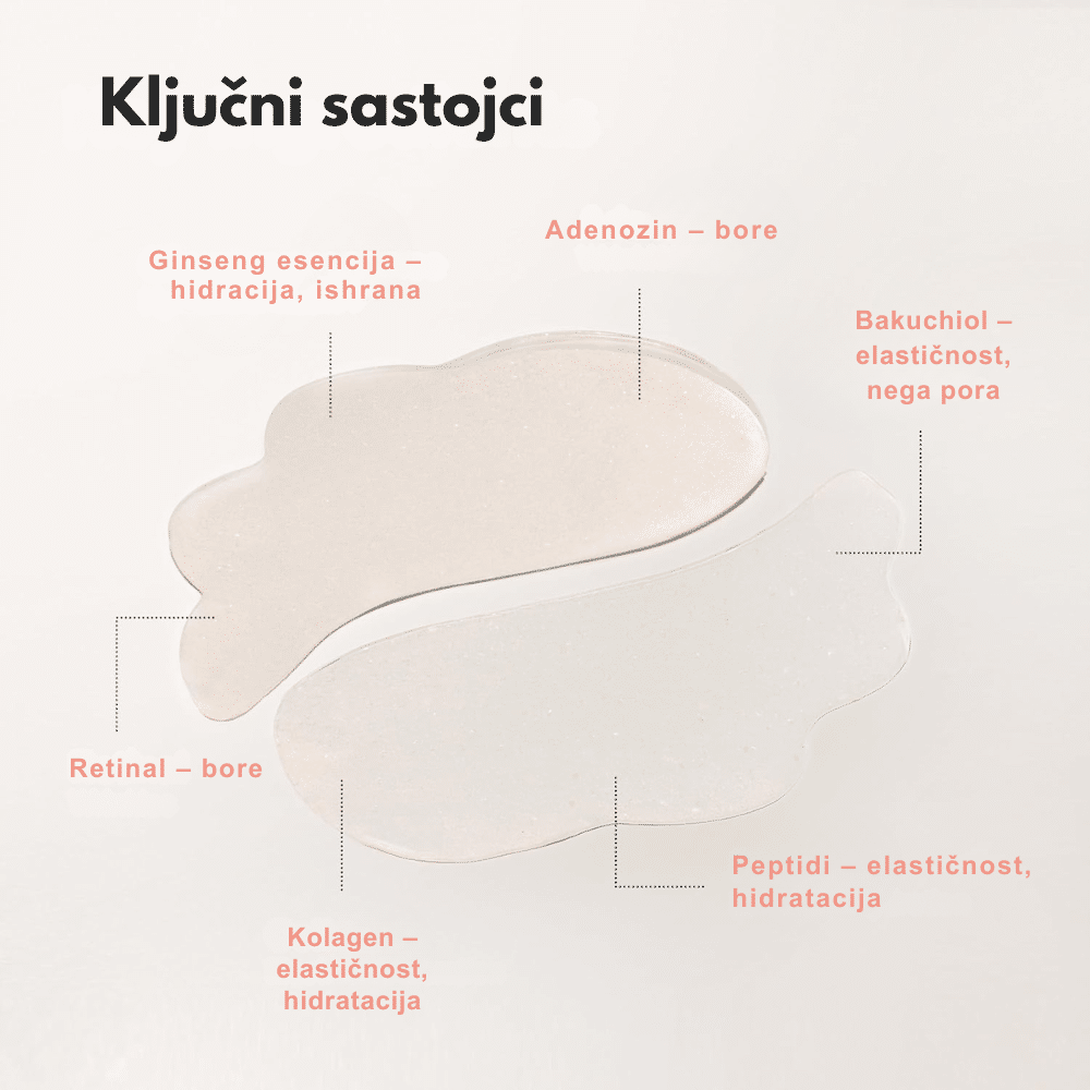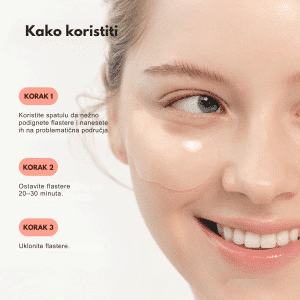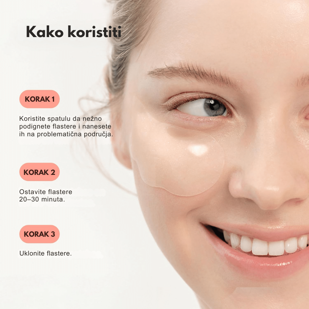 Hidrogel flasteri za područje oko očiju koji hidriraju, poboljšavaju elastičnost i pomažu u smanjenju finih linija.