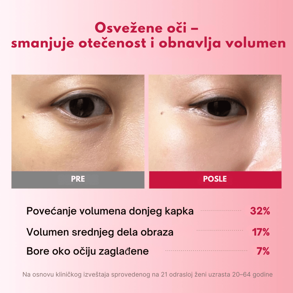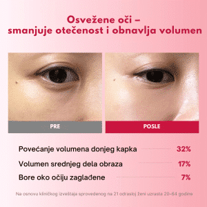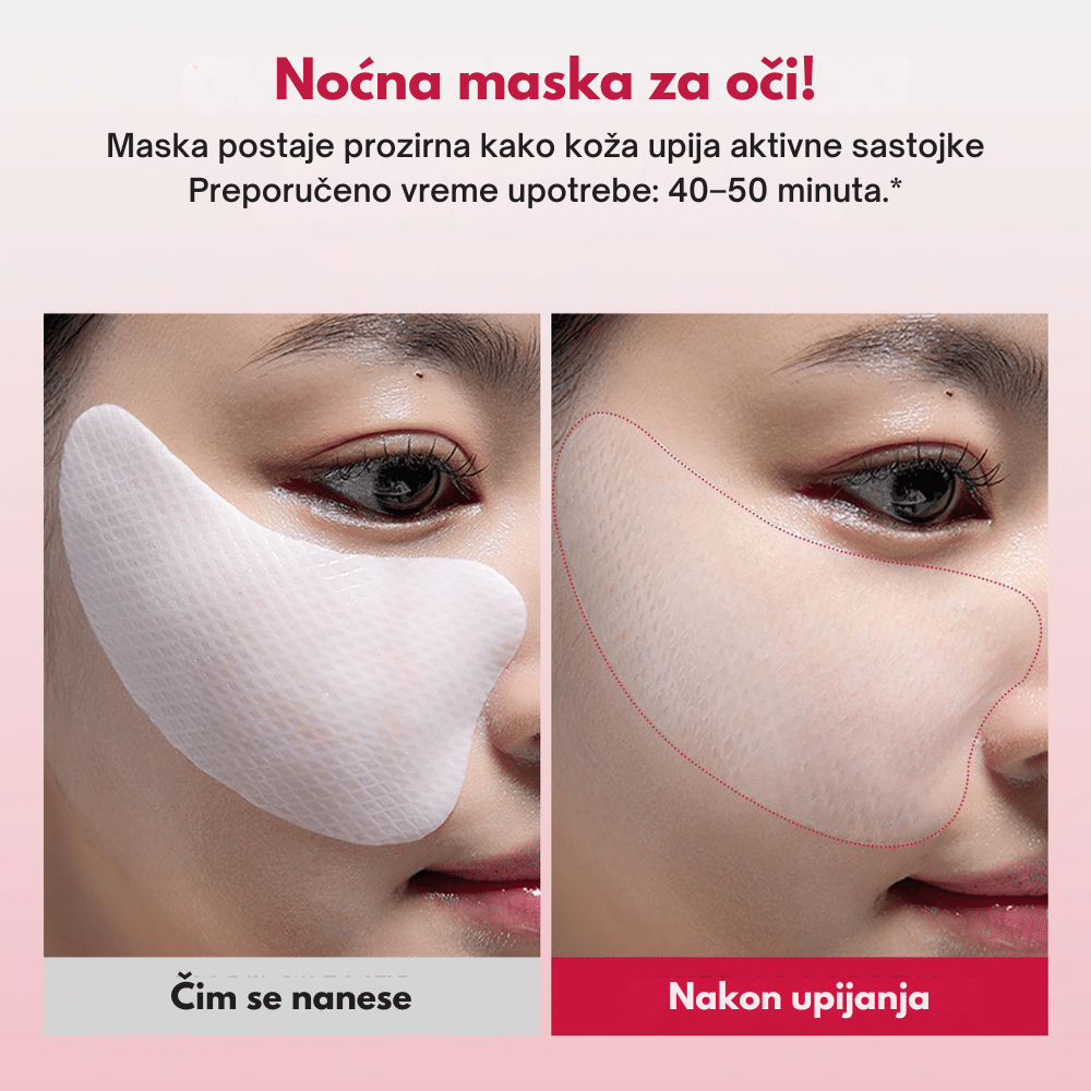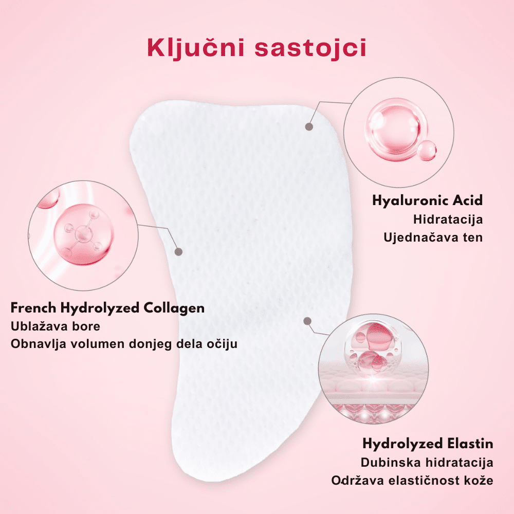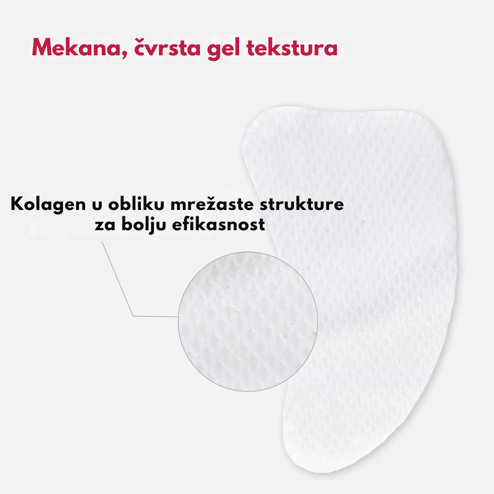Hidrogel flasteri sa peptidima i kolagenom koji zaglađuju bore, osvetljavaju i dubinski hidriraju područje oko očiju.