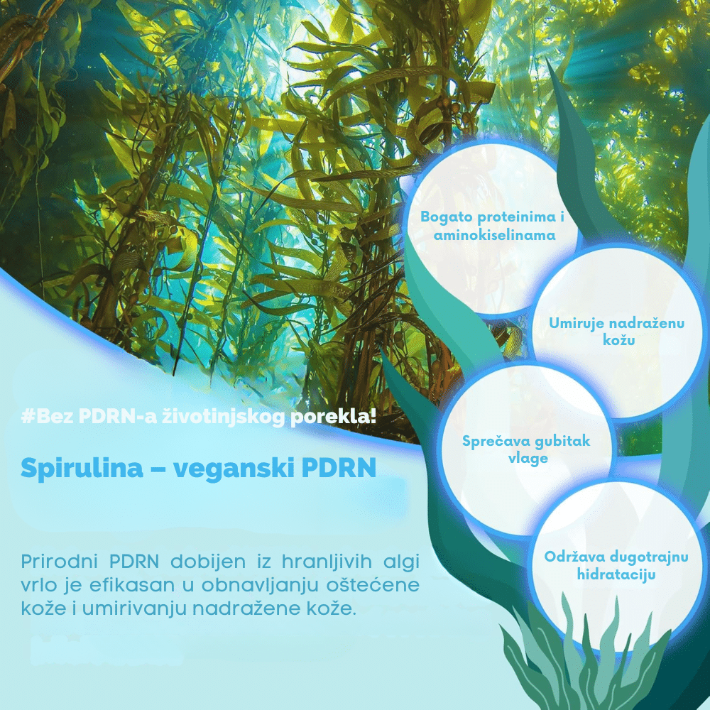 PDRN spirulina duo za umirenje kože, smanjenje pora i postizanje glatkog, matiranog tena spremnog za šminku.