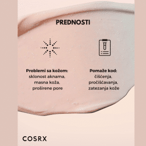 Cosrx je korejski kozmetički brend poznat po svojoj efikasnosti i jednostavnim, ali visokokvalitetnim proizvodima za negu kože. Osnovan 2013. godine, Cosrx je postao popularan zahvaljujući svojoj posvećenosti stvaranju proizvoda koji koriste minimalan broj sastojaka, ali sa maksimalnim učinkom, što ih čini idealnim za osetljivu kožu. Brend nudi širok spektar proizvoda, uključujući serume, tonere, maske i kreme, sa naglaskom na upotrebi sastojaka kao što su AHA, BHA, niacinamid, propolis i drugi biljni ekstrakti. Njihovi proizvodi su veganski, cruelty-free i ne sadrže parabene, sulfate ili veštačke mirise. Cosrx je prepoznat po svojoj jednostavnoj, ali efikasnoj formuli koja pomaže u rešavanju problema sa kožom kao što su akne, suvoća i nepravilnosti. Takođe, brend se ističe svojom posvećenostšću naučnoj i dermatološkoj istraživačkoj osnovi.